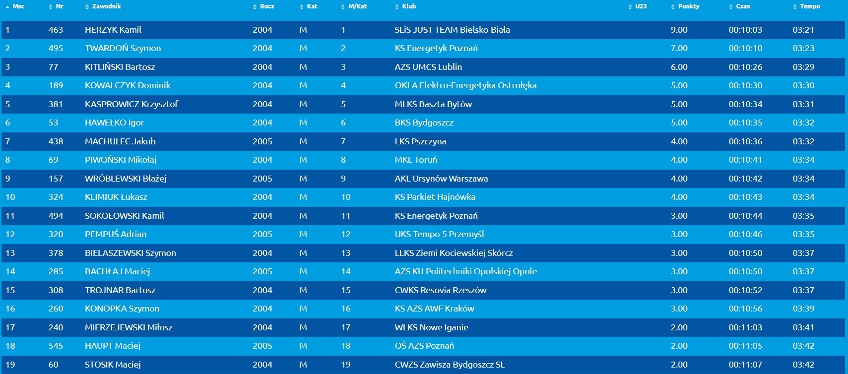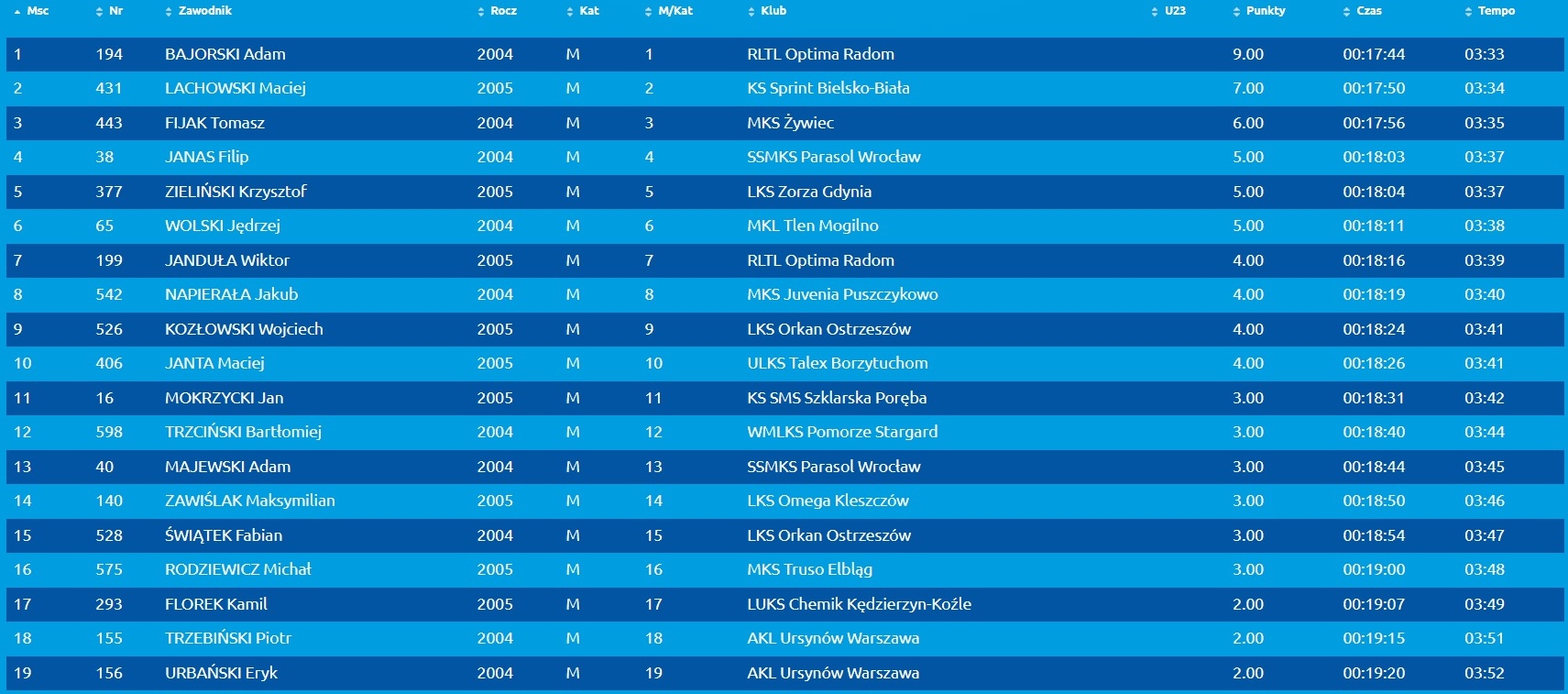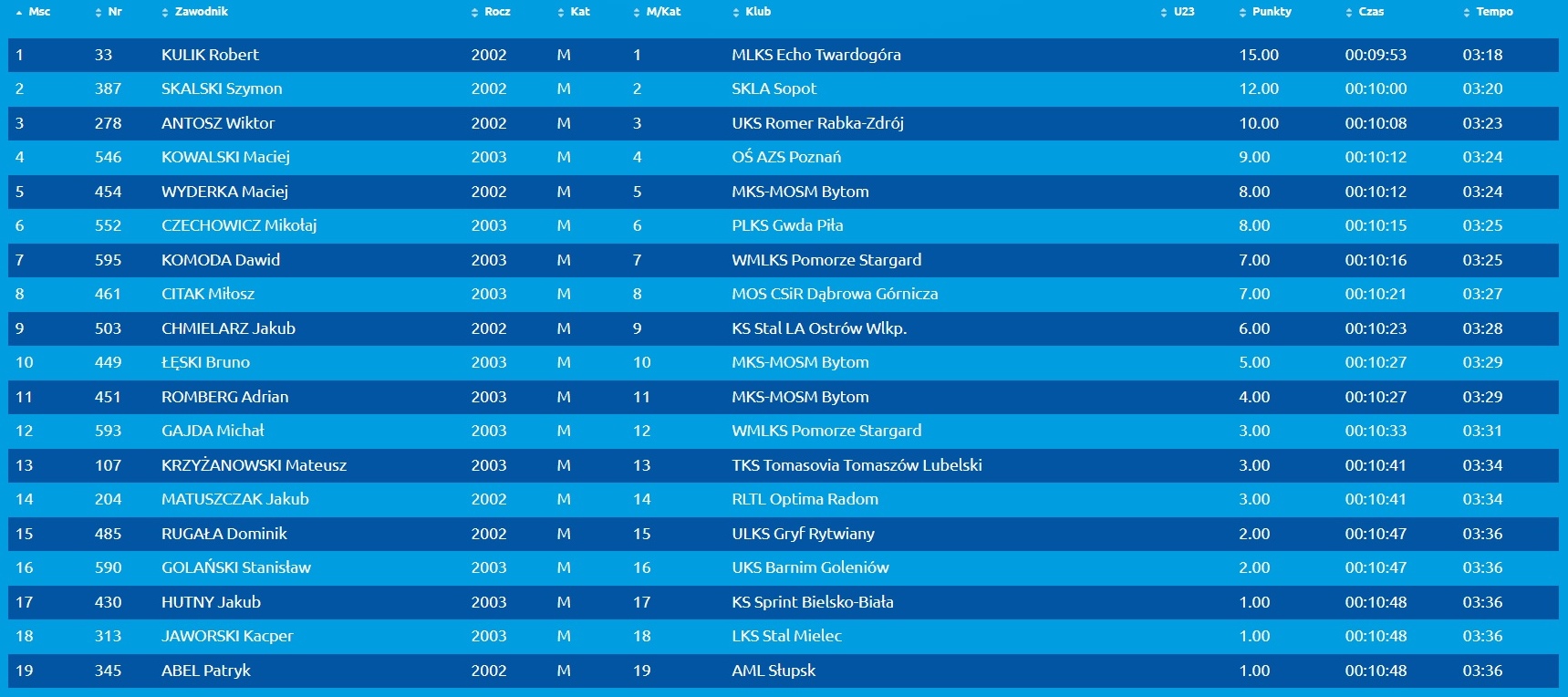 32 miejsce Bartosz Rusoń LKS Zorza Gdynia