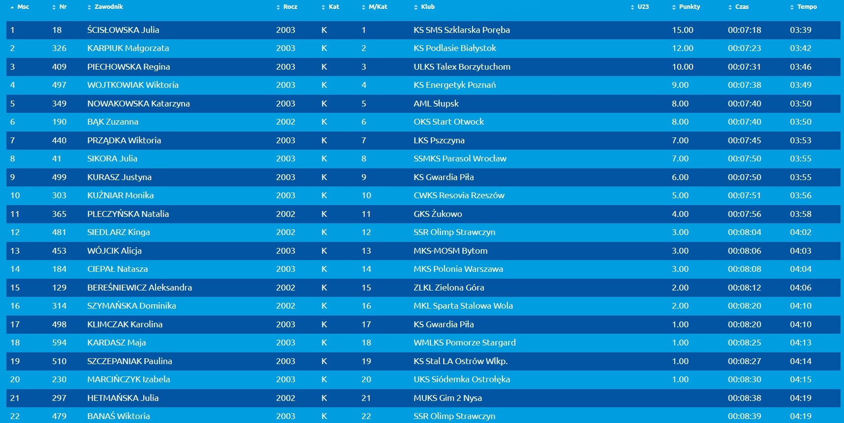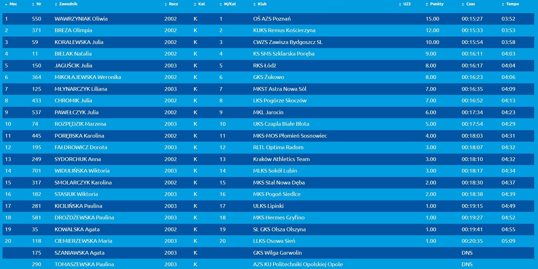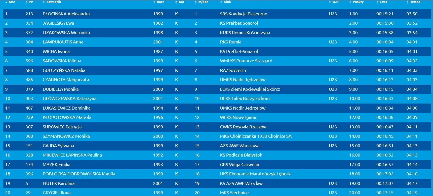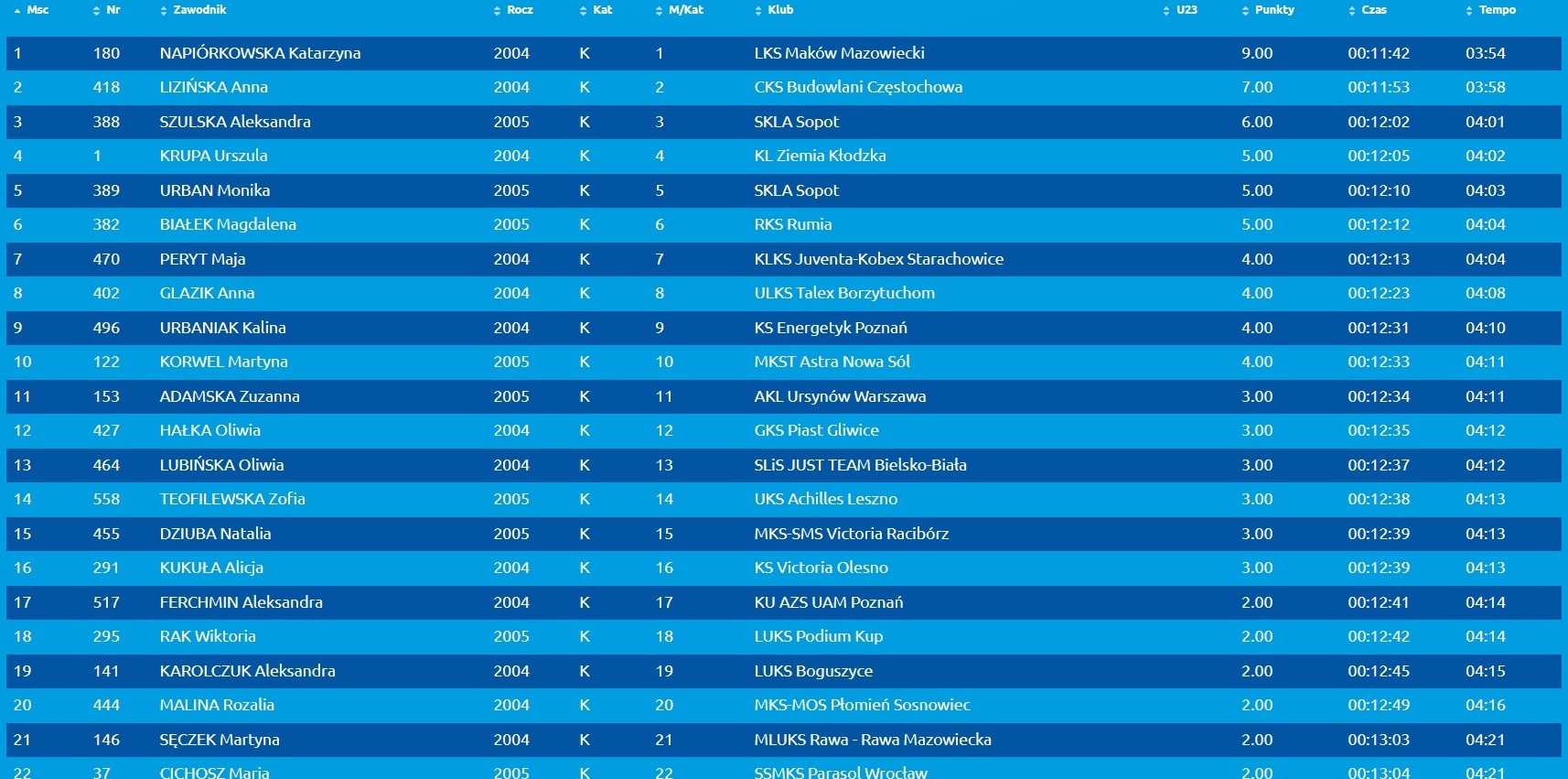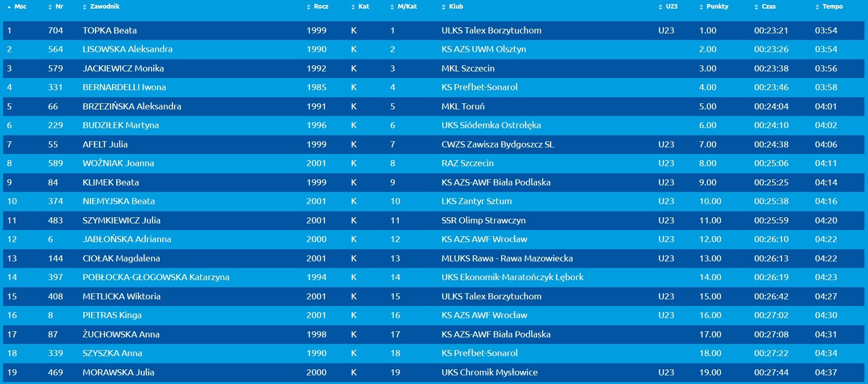 18 miejsce Kamila Pobłocka-Dobrowolska UKS Ekonomik-Maratończyk Lębork